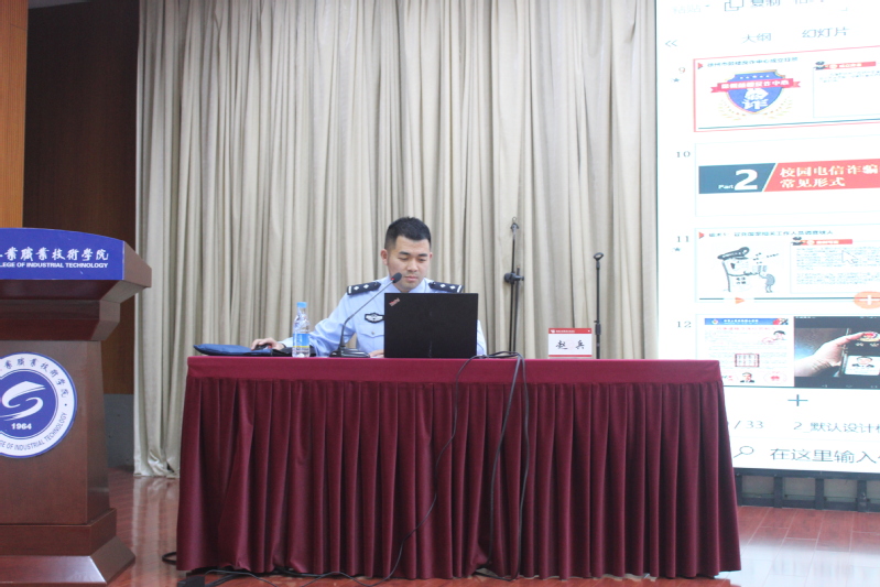 赵兵警官以详细生动的真实视频案例入手,重点讲解了冒充公检法诈骗、网络兼职诈骗、网络购物诈骗、贷款诈骗、冒充客服诈骗、网络交友诈骗、盗刷诈骗等多种诈骗类型,生动形象的阐述诈骗形成的根由及对社会造成的巨大危害和恶劣影响,并传授了各种诈骗的应对方法。最后,赵兵警官提醒同学们做到 “三要”,即:一要警惕“熟人”网络借款;二要远离网络刷单,做到不贪、不占、不转账,提高警惕之心,筑牢安全防线;三要提高安全意识,保护好个人隐私、个人信息。