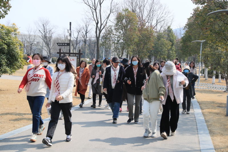 为庆祝第113个“三八”国际劳动妇女节,展现新时代机关女职工昂扬奋进的精神风貌,近日,机关妇联在玉潭湖开展“巾帼心向党奋进新征程”悦享三月环湖健步走活动,院长刘莹、党委副书记李红及机关妇联女教职工参加本次活动。