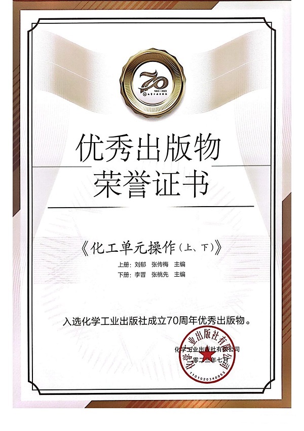 近日,我校教师周立雪、冷士良、刘郁3位教授荣获了化学工业出版社成立70周年“优秀作者”称号,刘郁教授主编的教材《化工单元操作》入选化学工业出版社成立70周年“优秀出版物”,这既是对我校教师全身心投入高质量教材编写的积极鼓舞,也是对我校高水平高职院校建设成果的肯定。
