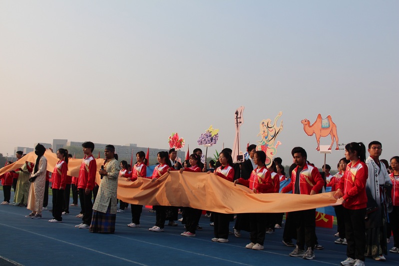 开幕式入场仪式上,各学院带来一段段彰显各自办学特色的精彩表演。机电工程学院用一幅幅画卷回顾了学校从1964年学校建校到跻身全国高职院校第一方阵的艰苦发展历程;国际教育学院用轻柔的丝带演绎着“一带一路”共建10年来的累累硕果,表明培养知华友华的国际人才,为中华民族伟大复兴贡献力量的远大情怀;化学工程学院用歌曲《技能之光》诠释着技能报国的志向;汽车工程学院给全体师生展示了新中国交通事业的发展进程,激励更多优秀人才服务祖国交通事业;建筑工程学院、材料工程学院、信息工程学院、工商管理学院、本科生院分别用武术、歌声、舞蹈、特色造型,充分表达对党的热爱与忠诚,展示在新征程上奋发拼搏的勇气和自信。