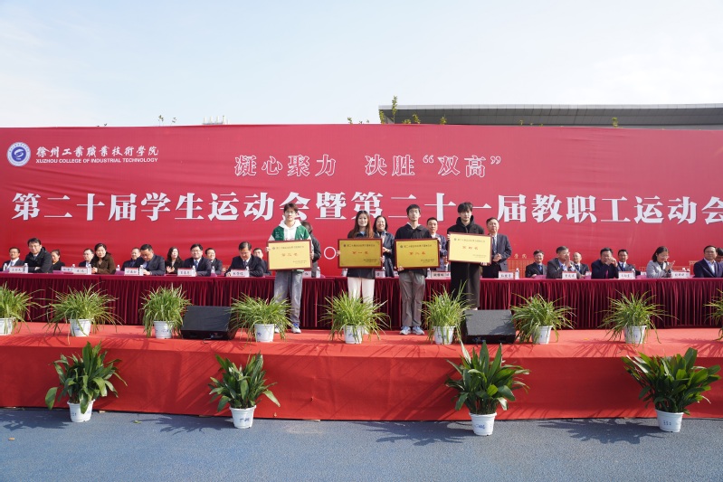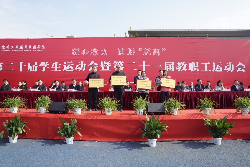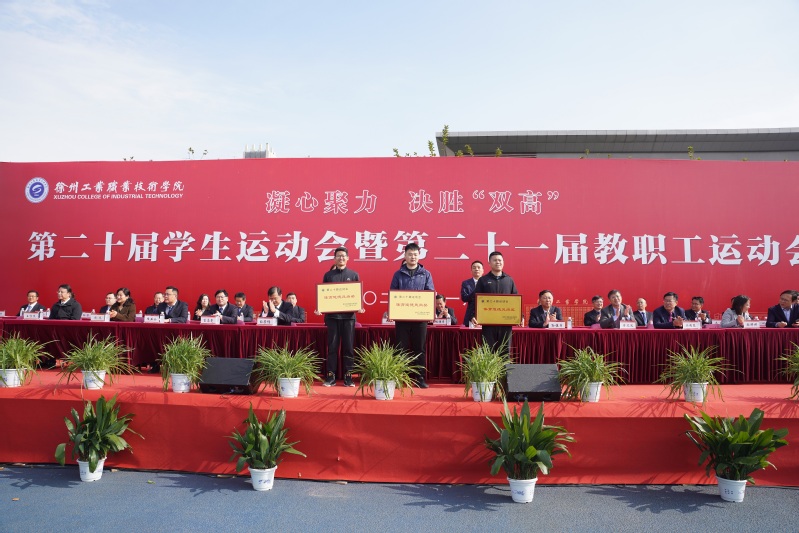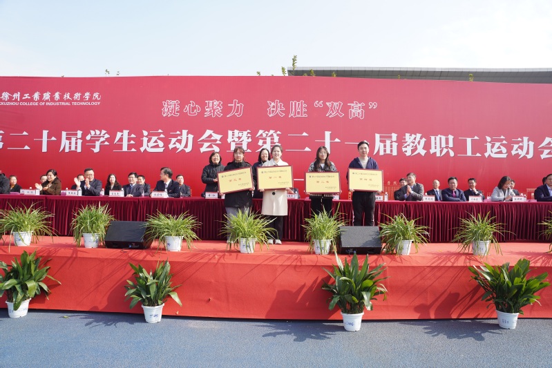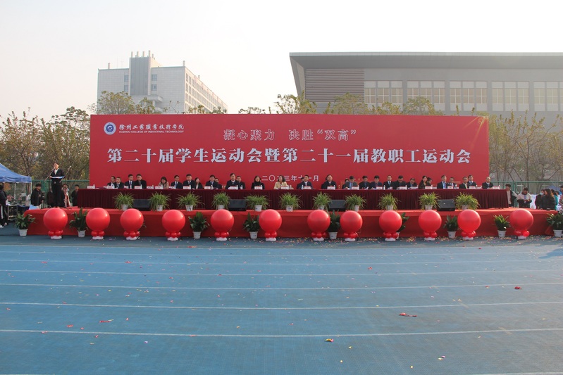 朔风乍起,初冬不寒。11月9日至10日,徐州工业职业技术学院田径运动场上激情四射,热闹非凡,学校第二十届学生运动会暨第二十一届教职工运动会在这里隆重举行。校党委和行政全体领导成员、各二级学院和相关部门负责人盛装出席。党委书记刘莹宣布运动会开幕,党委副书记、院长鲍桂楠致开幕词,副院长张芳儒致闭幕词。体艺部部长宋广侠主持。本届运动会共有来自227个班级1351名学生运动员以及512名教职工运动员,共计2737人次参与,师生参与度再创新高。