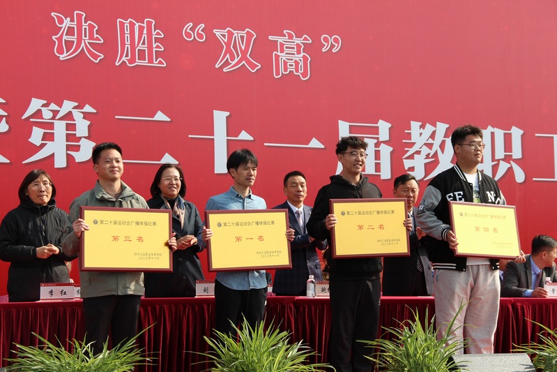 本届运动会共设学生和教职工赛项各30个。运动员们勇于挑战,奋力拼搏,取得了优异成绩。经过两天的激烈角逐,工商管理学院、汽车工程学院、机电工程学院、信息工程学院分别荣获学生团体总分前四名;工商管理学院、信息工程学院、汽车工程学院、化学工程学院获得女子团体前四名;汽车工程学院、机电工程学院、工商管理学院、建筑工程学院获得男子团体前四名;工商管理学院、信息工程学院、建筑工程学院、材料工程学院荣获广播体操比赛前四名;机电工程学院、国际教育学院、本科生院荣获体育道德风尚奖。