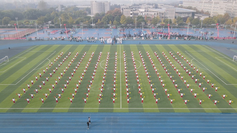 开幕式表演环节,来自学校12个工会的300名教职工表演了《24式简化太极拳》,展现了学校教师积极、稳健、快乐、严谨的良好形象。由体艺部编排的《行稳致远 祝福明天》的大型团体操表演气势恢宏,振奋人心,将开幕式推向了高潮,充分表现了徐工学子昂扬向上、奋发进取的青春面貌。