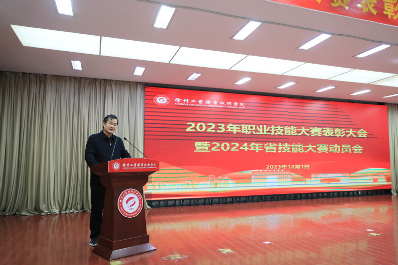副院长张芳儒对我校2023年职业技能大赛工作从参赛的广度、取得的成绩、承办大赛、政策支持等方面进行了总结,并对参加2024年职业技能大赛的师生进行动员,勉励大家在竞赛中充分发挥技能水平,沉着、认真对待每项赛程,以良好的心理素质和精神风貌,赛出风格,赛出水平,实现技能成才,技能报国,预祝我校在2024年职业技能大赛中取得优异成绩。